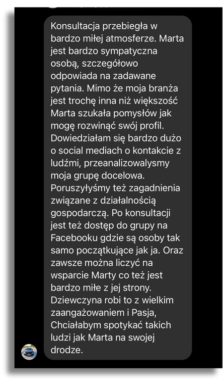 Indywidualne omówienie Twojej komunikacji z klientami oraz sposobu prezentowania oferty.